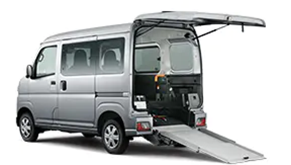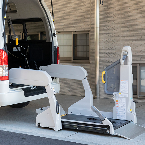 福祉車両のリアリフトは、車いすやモビリティデバイスの簡便な積み降ろしを可能にし、利用者の自由な移動を支えます。